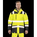 Hi-Vis Yellow & Hi-Vis Yellow/Navy, Orange and Orange/Navy conform to EN ISO20471:2013 Class 3. Orange and Orange/Navy conform to GO/RT 3279 & approved for the railway industry. Navy provides enhanced visibility. 3 layers softshell fabric ensures 8000mm breathable & 3000 mvp waterproof. Outer layer: 100% polyester. Middle layer: TPU membrane. Inner layer: 140D warm & comfort microfleece. 5cm width reflective tapes around the body and arms, one over each shoulder. 100% waterproof zippers & branded zipper pullers applied to the front and chest pocket. 2 hand warmer pockets with zipper fastening. Rubber cuff adjusters & draw cord hem adjuster. Shaped lower back for style. Navy contrast helps to provide a corporate image and hide scuff marks.