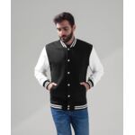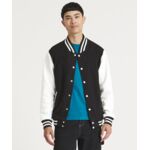 The college style presents itself as a cool stylish women's jacket with contrasted cuffs to offer a preppy look and feel. The inside brushed sweat fabric ensures a comfortable fit. Typical details include; striped rib cuffs at the collar, hem and sleeves and metal press-buttons to emphasize the cool look. Two pockets on the front, set-in sleeves and neck half-moon with neck tape.