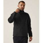 Contemporary softshell jacket with 3 piece hood. Contrast colour panelling on shoulders and upper sleeve. Soft-touch Jersey fabric with bonded microfleece reverse. Zipped chest and side pockets and contrast colour centre front zip with non-slip gripper zip pulls. Side body panels with topstitching. Dropped back hem. Stretch binding at cuffs and hem. Set-in sleeves.