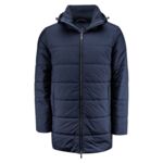 Tonal coil zip on centre front with signature zip puller with mousetail piping on CF zip and internal storm flap with chin guard. Diamond stitched sandwiched baffles. 245gsm polyester fill. Stretch elastic around cuffs and hem for added protection. Binding around internal seams. Smartphone friendly - internal self loop attachment for headphone wire. Cire finish semi shine face fabric. Product contains no branded neck label.* Removable Kimble or looped garment tags. Inner seam label holds important product information on one label with a second label containing brand information which can be cut-away.